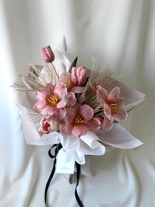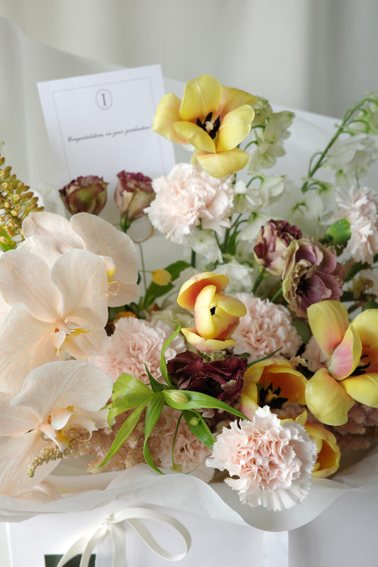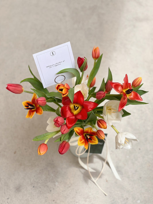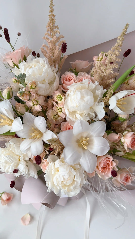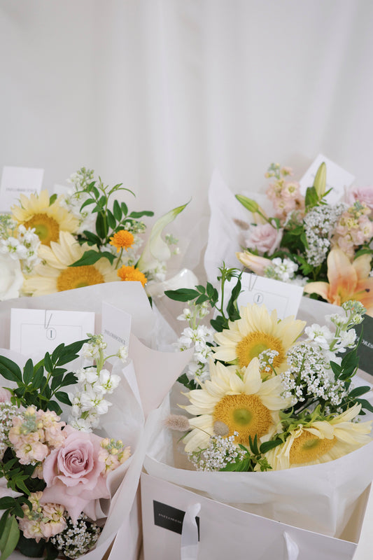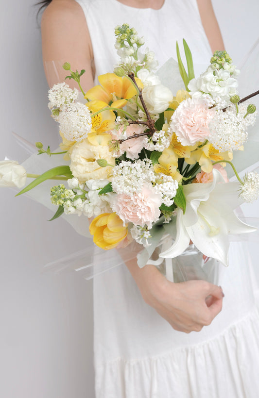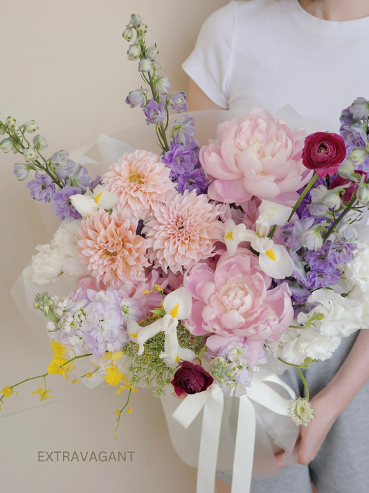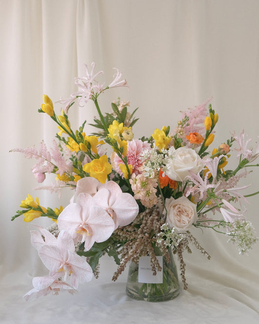 Love our studio's signature style, unable to make a decision or simply relish the unexpected? Our curated selection of season's most vibrant and freshest flower offering is perfect for you. Select your desired size and leave the rest of the magic to us!